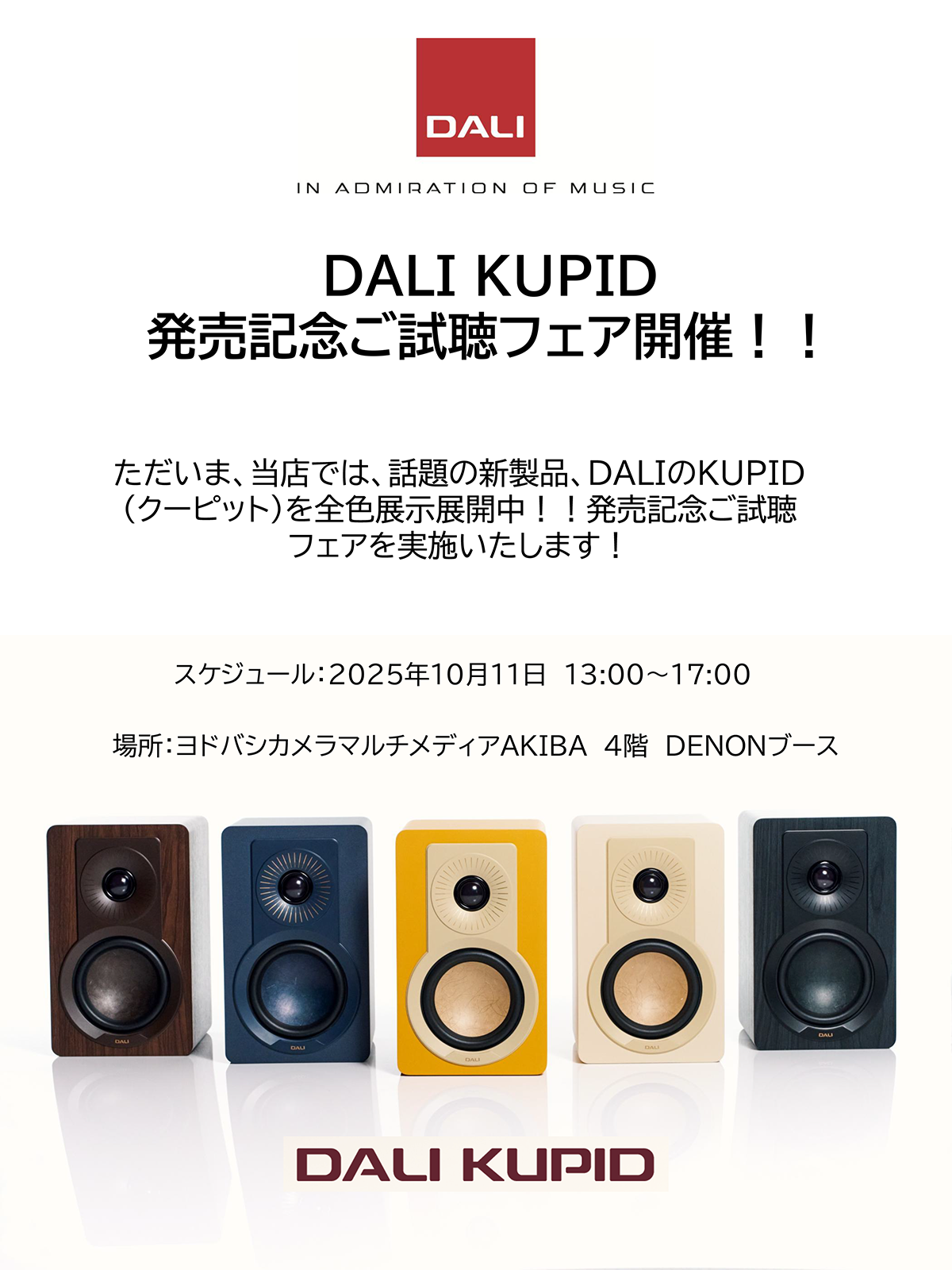 話題の新製品、DALI KUPIDを全5色一斉展示中です!